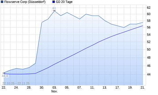 Mit dem Rücksetzer auf 57,00 EUR hat die Flowserve-Aktie am 21.11.2025 die 20-Tage-Linie nach unten gekreuzt.Die Flowserve-Aktie befindet sich seit dem 29.10.2025 im langfristigen Aufwärtstrend ...weiterlesen