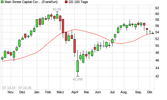 Mit dem Rücksetzer auf 53,59 EUR hat die Main Street Capital Corporation Common Stock-Aktie am 06.10.2025 die 100-Tage-Linie nach unten gekreuzt.Die Main Street Capital Corporation Common ...weiterlesen