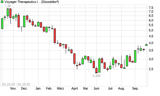 Mit dem Anstieg auf 3,81 EUR hat die Voyager Therapeutics-Aktie (ISIN US92915B1061) am 30.09.2025 ein neues 6-Monats-Hoch erreicht und damit den Kurs vom 19.09.2025 eingestellt.Die Voyager Therapeutics-Aktie ...weiterlesen