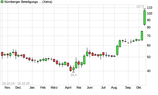 Mit dem Anstieg auf 104,00 EUR hat die Nürnberger Beteiligungs AG-Aktie (ISIN DE0008435967) am 14.10.2025 ein neues 10-Jahres-Hoch erreicht und damit den Kurs vom 13.10.2025 eingestellt.Die ...weiterlesen
