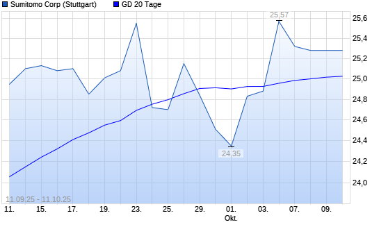 Mit dem Rücksetzer auf 24,95 EUR hat die Sumitomo-Aktie am 10.10.2025 die 20-Tage-Linie nach unten gekreuzt.Die Sumitomo-Aktie befindet sich seit dem 23.04.2025 im langfristigen Aufwärtstrend ...weiterlesen