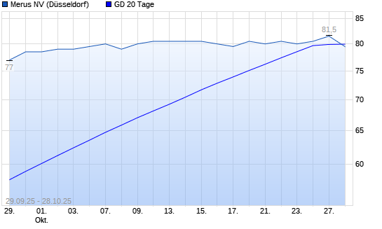 Mit dem Rücksetzer auf 77,50 EUR hat die Merus-Aktie am 27.10.2025 die 20-Tage-Linie nach unten gekreuzt.Der Abstand zur 200-Tage-Linie beträgt aktuell +60,54%.