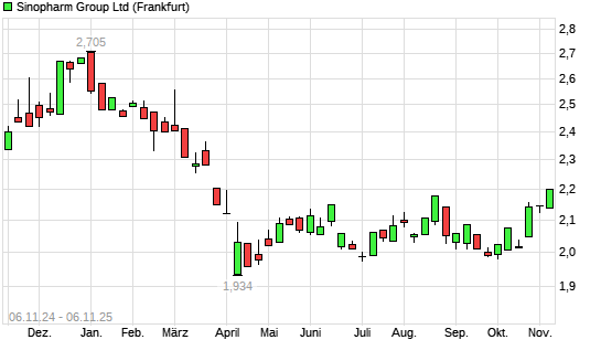 Mit dem Anstieg auf 2,19 EUR hat die Sinopharm Group Co-Aktie (ISIN CNE100000FN7) am 05.11.2025 ein neues 6-Monats-Hoch erreicht und damit den Kurs vom 22.08.2025 eingestellt.Die Sinopharm Group ...weiterlesen