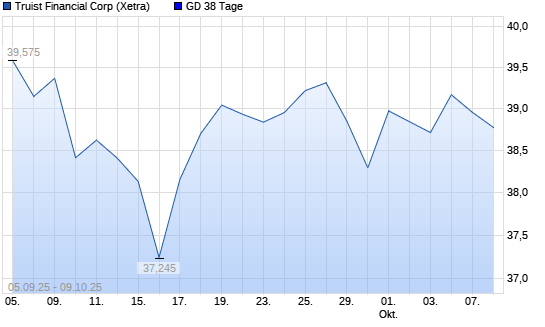 Mit dem Anstieg auf 38,76 EUR hat die Truist Financial-Aktie am 08.10.2025 die 38-Tage-Linie nach oben gekreuzt.Die Truist Financial-Aktie befindet sich seit dem 24.09.2025 im langfristigen ...weiterlesen