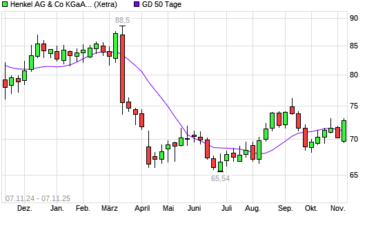 Mit dem Anstieg auf 71,28 EUR hat die Henkel Vz-Aktie am 06.11.2025 die 50-Tage-Linie nach oben gekreuzt.Die Henkel Vz-Aktie befindet sich seit dem 10.09.2025 im langfristigen Abwärtstrend und ...weiterlesen