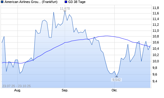 Mit dem Rücksetzer auf 10,36 EUR hat die American Airlines-Aktie am 22.10.2025 die 38-Tage-Linie nach unten gekreuzt.Die American Airlines-Aktie befindet sich seit dem 06.03.2025 im langfristigen ...weiterlesen