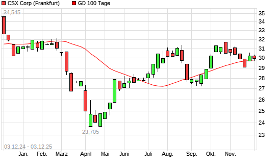 Mit dem Rücksetzer auf 29,79 EUR hat die CSX-Aktie am 02.12.2025 die 100-Tage-Linie nach unten gekreuzt.Die CSX-Aktie befindet sich seit dem 24.09.2025 im langfristigen Aufwärtstrend und ...weiterlesen