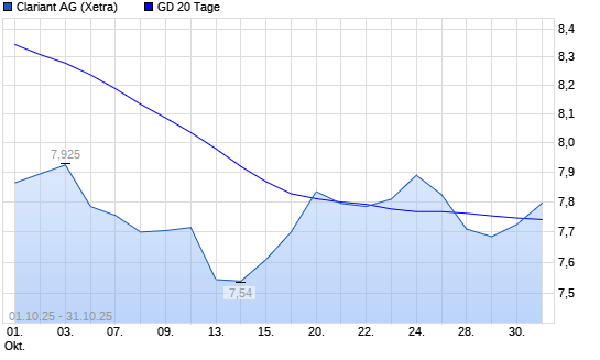 Mit dem Anstieg auf 7,73 EUR hat die Clariant-Aktie am 30.10.2025 die 20-Tage-Linie nach oben gekreuzt.Die Clariant-Aktie befindet sich seit dem 29.10.2024 im langfristigen Abwärtstrend und ...weiterlesen