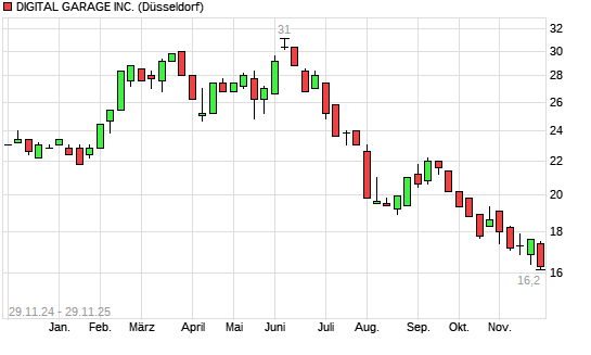 Mit dem Rücksetzer auf 16,40 EUR hat die Digital Garage-Aktie (ISIN JP3549070005) am 28.11.2025 ein neues 12-Monats-Tief erreicht und damit den Kurs vom 18.11.2025 eingestellt.Die Digital ...weiterlesen