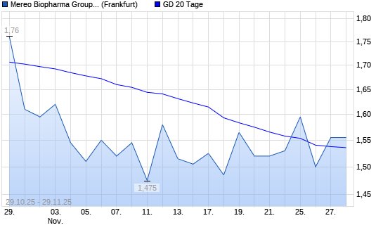 Mit dem Anstieg auf 1,58 EUR hat die Mereo Biopharma-Aktie am 28.11.2025 die 20-Tage-Linie nach oben gekreuzt.Die Mereo Biopharma-Aktie befindet sich seit dem 13.01.2025 im langfristigen Abwärtstrend ...weiterlesen