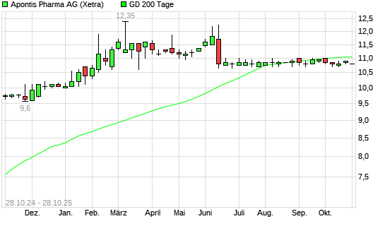 Mit dem Anstieg auf 10,80 EUR hat die Apontis Pharma-Aktie am 27.10.2025 die 200-Tage-Linie nach oben gekreuzt.Die Apontis Pharma-Aktie befand sich seit dem 06.10.2025 im langfristigen Abwärtstrend ...weiterlesen