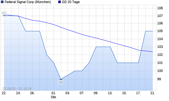Mit dem Anstieg auf 101,00 EUR hat die Federal Signal Corporation-Aktie am 20.10.2025 die 20-Tage-Linie nach oben gekreuzt.Die Federal Signal Corporation-Aktie befindet sich seit dem 04.06.2025 ...weiterlesen