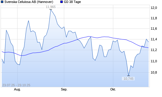 Mit dem Anstieg auf 11,27 EUR hat die Svenska Cellulosa B-Aktie am 22.10.2025 die 38-Tage-Linie nach oben gekreuzt.Die Svenska Cellulosa B-Aktie befindet sich seit dem 23.05.2025 im langfristigen ...weiterlesen