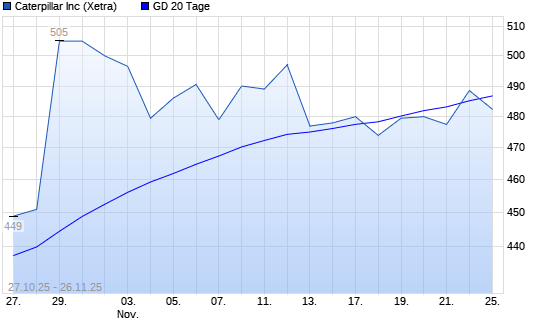 Mit dem Rücksetzer auf 483,50 EUR hat die Caterpillar-Aktie am 25.11.2025 die 20-Tage-Linie nach unten gekreuzt.Die Caterpillar-Aktie befindet sich seit dem 01.07.2025 im langfristigen ...weiterlesen