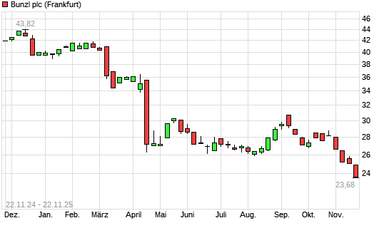 Mit dem Rücksetzer auf 23,68 EUR hat die Bunzl-Aktie (ISIN GB00B0744B38) am 21.11.2025 ein neues 5-Jahres-Tief erreicht und damit den Kurs vom 19.11.2025 eingestellt.Die Bunzl-Aktie befindet ...weiterlesen