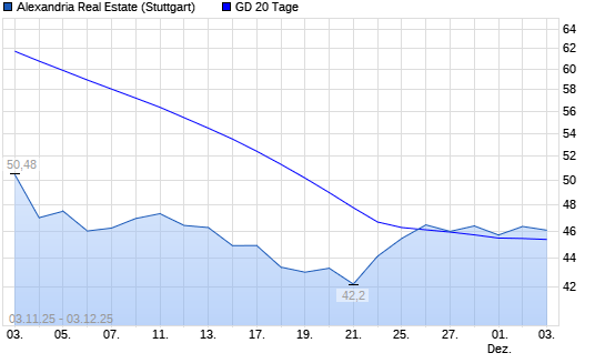 Mit dem Anstieg auf 45,17 EUR hat die Alexandria Real Estate-Aktie am 02.12.2025 die 20-Tage-Linie nach oben gekreuzt.Die Alexandria Real Estate-Aktie befindet sich seit dem 25.10.2024 im langfristigen ...weiterlesen