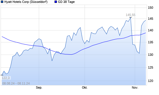 Mit dem Anstieg auf 142,05 EUR hat die Hyatt Hotels A-Aktie am 07.11.2024 die 38-Tage-Linie nach oben gekreuzt.Die Hyatt Hotels A-Aktie befindet sich seit dem 06.11.2024 im langfristigen Aufwärtstrend ...weiterlesen