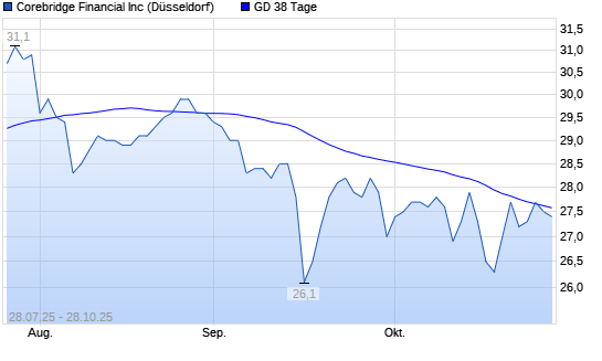 Mit dem Anstieg auf 27,70 EUR hat die Corebridge Financial-Aktie am 27.10.2025 die 38-Tage-Linie nach oben gekreuzt.Die Corebridge Financial-Aktie befindet sich seit dem 05.09.2025 im langfristigen ...weiterlesen