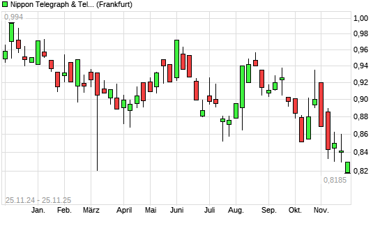 Mit dem Rücksetzer auf 0,82 EUR hat die Nippon Telegraph & Telephone-Aktie (ISIN JP3735400008) am 24.11.2025 ein neues 6-Monats-Tief erreicht und damit den Kurs vom 06.11.2025 eingestellt.Die ...weiterlesen