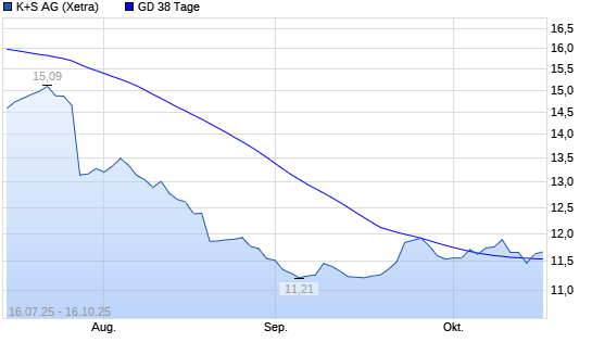 Mit dem Anstieg auf 11,53 EUR hat die K+S-Aktie am 15.10.2025 die 38-Tage-Linie nach oben gekreuzt.Die K+S-Aktie befindet sich seit dem 06.08.2025 im langfristigen Abwärtstrend und hat in diesem ...weiterlesen