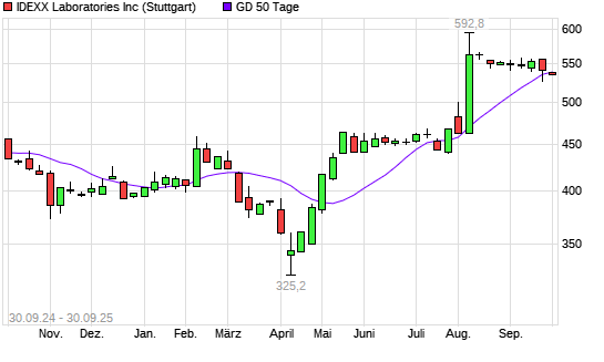 Mit dem Anstieg auf 539,00 EUR hat die IDEXX Laboratories-Aktie am 29.09.2025 die 50-Tage-Linie nach oben gekreuzt.Die IDEXX Laboratories-Aktie befindet sich seit dem 02.05.2025 im langfristigen ...weiterlesen