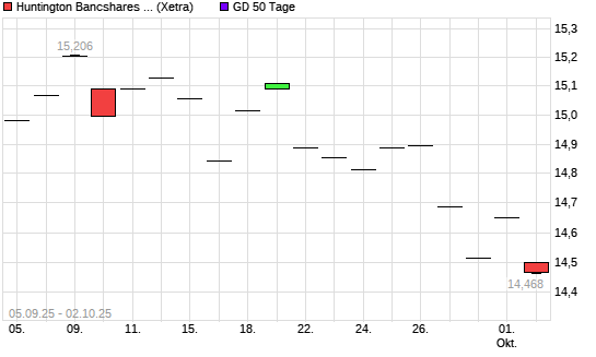 Mit dem Rücksetzer auf 14,51 EUR hat die Huntington Bancshares-Aktie am 01.10.2025 die 50-Tage-Linie nach unten gekreuzt.Die Huntington Bancshares-Aktie befindet sich seit dem 25.08.2025 ...weiterlesen