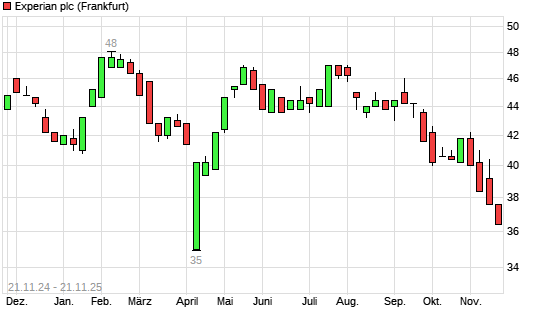 Mit dem Rücksetzer auf 36,60 EUR hat die Experian-Aktie (ISIN GB00B19NLV48) am 20.11.2025 ein neues 6-Monats-Tief erreicht und damit den Kurs vom 19.11.2025 eingestellt.Die Experian-Aktie ...weiterlesen