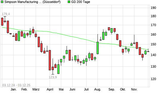 Mit dem Rücksetzer auf 144,00 EUR hat die Simpson Manufacturing Company-Aktie am 02.12.2025 die 200-Tage-Linie nach unten gekreuzt.Die Simpson Manufacturing Company-Aktie befand sich seit ...weiterlesen