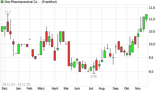 Mit dem Anstieg auf 11,20 EUR hat die Ono Pharmaceut.-Aktie (ISIN JP3197600004) am 18.11.2025 ein neues 6-Monats-Hoch erreicht und damit den Kurs vom 17.11.2025 eingestellt.Die Ono Pharmaceut.-Aktie ...weiterlesen