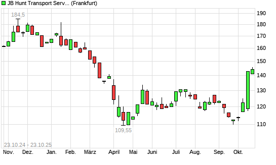 Mit dem Anstieg auf 145,50 EUR hat die JB Hunt Transport Services-Aktie (ISIN US4456581077) am 22.10.2025 ein neues 6-Monats-Hoch erreicht und damit den Kurs vom 17.10.2025 eingestellt.Die JB ...weiterlesen