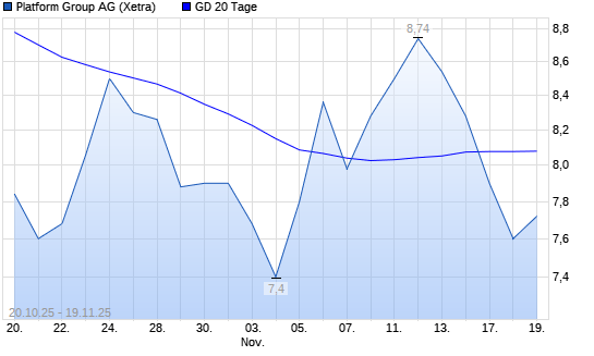 Mit dem Rücksetzer auf 7,60 EUR hat die Platform Group-Aktie am 18.11.2025 die 20-Tage-Linie nach unten gekreuzt.Die Platform Group-Aktie befindet sich seit dem 29.09.2025 im langfristigen ...weiterlesen