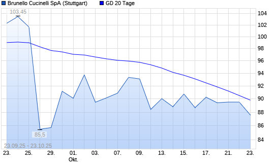 Mit dem Anstieg auf 91,06 EUR hat die Brunello Cucinelli-Aktie am 22.10.2025 die 20-Tage-Linie nach oben gekreuzt.Die Brunello Cucinelli-Aktie befindet sich seit dem 21.07.2025 im langfristigen ...weiterlesen
