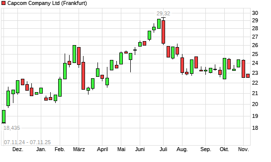 Mit dem Rücksetzer auf 22,53 EUR hat die Capcom-Aktie (ISIN JP3218900003) am 06.11.2025 ein neues 6-Monats-Tief erreicht und damit den Kurs vom 30.10.2025 eingestellt.Die Capcom-Aktie befindet ...weiterlesen