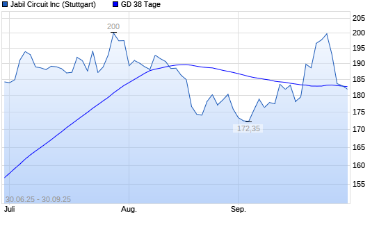 Mit dem Rücksetzer auf 181,50 EUR hat die Jabil Circuit-Aktie am 29.09.2025 die 38-Tage-Linie nach unten gekreuzt.Die Jabil Circuit-Aktie befindet sich seit dem 23.04.2025 im langfristigen ...weiterlesen