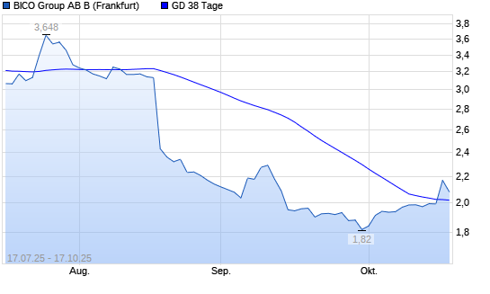 Mit dem Anstieg auf 2,18 EUR hat die Bico Group (ex Cellink)-Aktie am 16.10.2025 die 38-Tage-Linie nach oben gekreuzt.Die Bico Group (ex Cellink)-Aktie befindet sich seit dem 19.08.2025 im langfristigen ...weiterlesen