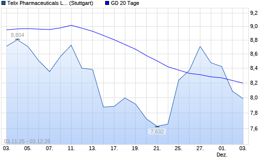 Mit dem Rücksetzer auf 8,07 EUR hat die Telix Pharmaceuticals-Aktie am 02.12.2025 die 20-Tage-Linie nach unten gekreuzt.Die Telix Pharmaceuticals-Aktie befindet sich seit dem 13.06.2025 ...weiterlesen