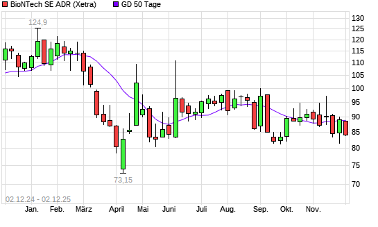 Mit dem Rücksetzer auf 83,85 EUR hat die BioNTech-Aktie am 01.12.2025 die 50-Tage-Linie nach unten gekreuzt.Die BioNTech-Aktie befindet sich seit dem 13.11.2025 im langfristigen Abwärtstrend ...weiterlesen