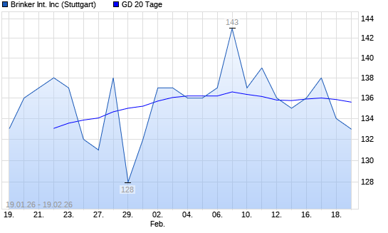Mit dem Anstieg auf 137,00 EUR hat die Brinker International-Aktie am 18.02.2026 die 20-Tage-Linie nach oben gekreuzt.Die Brinker International-Aktie befindet sich seit dem 05.01.2026 ...weiterlesen