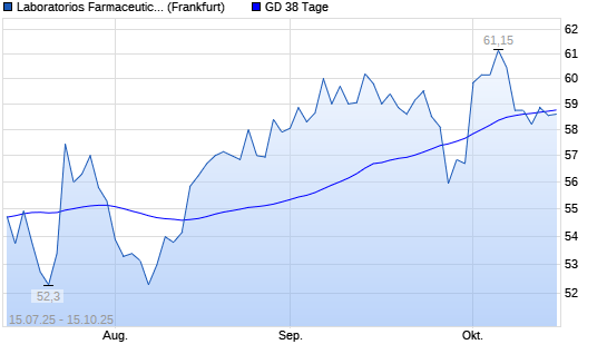 Mit dem Rücksetzer auf 58,55 EUR hat die Laboratorios Farmaceut.-Aktie am 14.10.2025 die 38-Tage-Linie nach unten gekreuzt.Die Laboratorios Farmaceut.-Aktie befindet sich seit dem 18.08.2025 ...weiterlesen