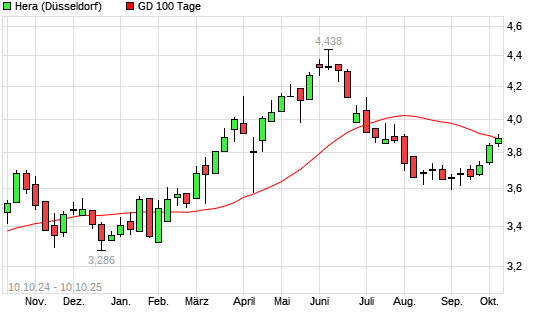 Mit dem Anstieg auf 3,86 EUR hat die Hera-Aktie am 09.10.2025 die 100-Tage-Linie nach oben gekreuzt.Die Hera-Aktie befindet sich seit dem 03.10.2025 im langfristigen Aufwärtstrend und hat in ...weiterlesen