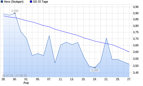 Mit dem Anstieg auf 3,74 EUR hat die Hera-Aktie am 26.08.2025 die 20-Tage-Linie nach oben gekreuzt.Die Hera-Aktie befindet sich seit dem 05.08.2025 im langfristigen Aufwärtstrend und hat in ...weiterlesen