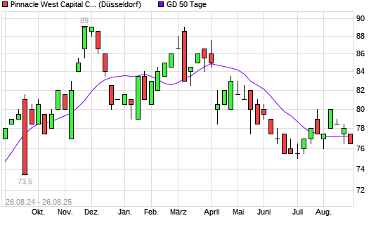Mit dem Rücksetzer auf 77,00 EUR hat die Pinnacle West Capital-Aktie am 25.08.2025 die 50-Tage-Linie nach unten gekreuzt.Die Pinnacle West Capital-Aktie befindet sich seit dem 02.05.2025 ...weiterlesen