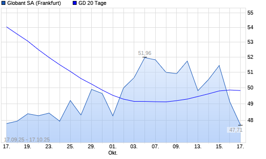 Mit dem Rücksetzer auf 49,12 EUR hat die Globant-Aktie am 16.10.2025 die 20-Tage-Linie nach unten gekreuzt.Die Globant-Aktie befindet sich seit dem 21.02.2025 im langfristigen Abwärtstrend ...weiterlesen
