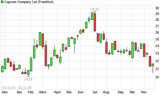Mit dem Rücksetzer auf 20,50 EUR hat die Capcom-Aktie (ISIN JP3218900003) am 20.11.2025 ein neues 6-Monats-Tief erreicht und damit den Kurs vom 19.11.2025 eingestellt.Die Capcom-Aktie befindet ...weiterlesen