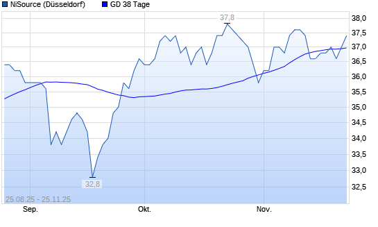 Mit dem Anstieg auf 37,20 EUR hat die NiSource-Aktie am 24.11.2025 die 38-Tage-Linie nach oben gekreuzt.Die NiSource-Aktie befindet sich seit dem 24.09.2025 im langfristigen Aufwärtstrend und ...weiterlesen