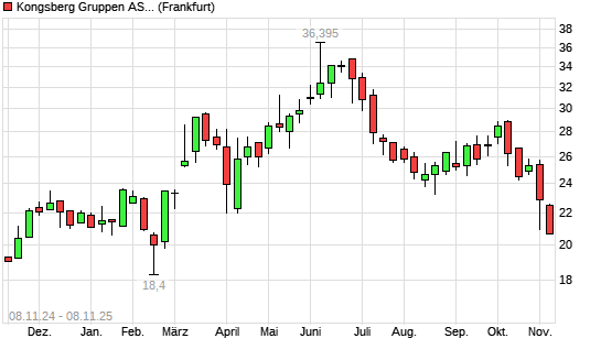 Mit dem Rücksetzer auf 20,68 EUR hat die Kongsberg-Aktie (ISIN NO0013536151) am 07.11.2025 ein neues 6-Monats-Tief erreicht und damit den Kurs vom 06.11.2025 eingestellt.Die Kongsberg-Aktie ...weiterlesen