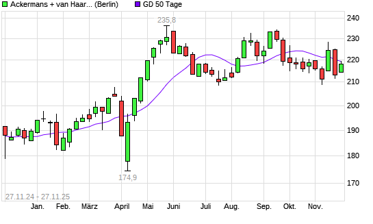 Mit dem Anstieg auf 219,80 EUR hat die Ackermans + van Haaren-Aktie am 26.11.2025 die 50-Tage-Linie nach oben gekreuzt.Die Ackermans + van Haaren-Aktie befindet sich seit dem 25.11.2025 im langfristigen ...weiterlesen