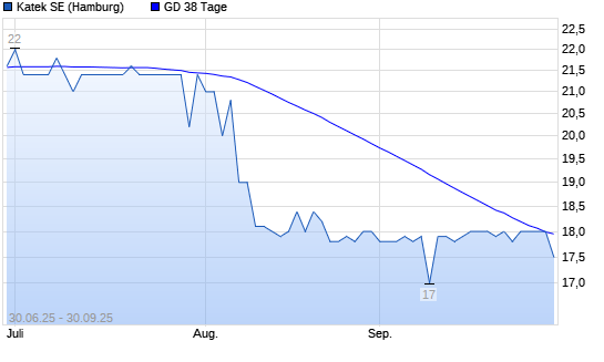 Mit dem Anstieg auf 18,00 EUR hat die KATEK SE O.N.-Aktie am 29.09.2025 die 38-Tage-Linie nach oben gekreuzt.Die KATEK SE O.N.-Aktie befindet sich seit dem 07.08.2025 im langfristigen Abwärtstrend ...weiterlesen