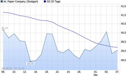 Mit dem Rücksetzer auf 38,43 EUR hat die International Paper-Aktie am 06.10.2025 die 20-Tage-Linie nach unten gekreuzt.Die International Paper-Aktie befindet sich seit dem 30.07.2025 im ...weiterlesen