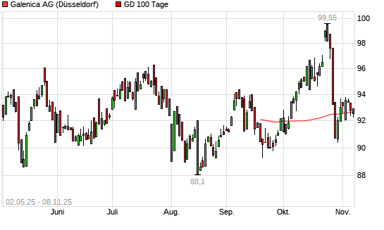 Mit dem Rücksetzer auf 92,00 EUR hat die Galenica-Aktie am 07.11.2025 die 100-Tage-Linie nach unten gekreuzt.Die Galenica-Aktie befindet sich seit dem 17.03.2025 im langfristigen Aufwärtstrend ...weiterlesen